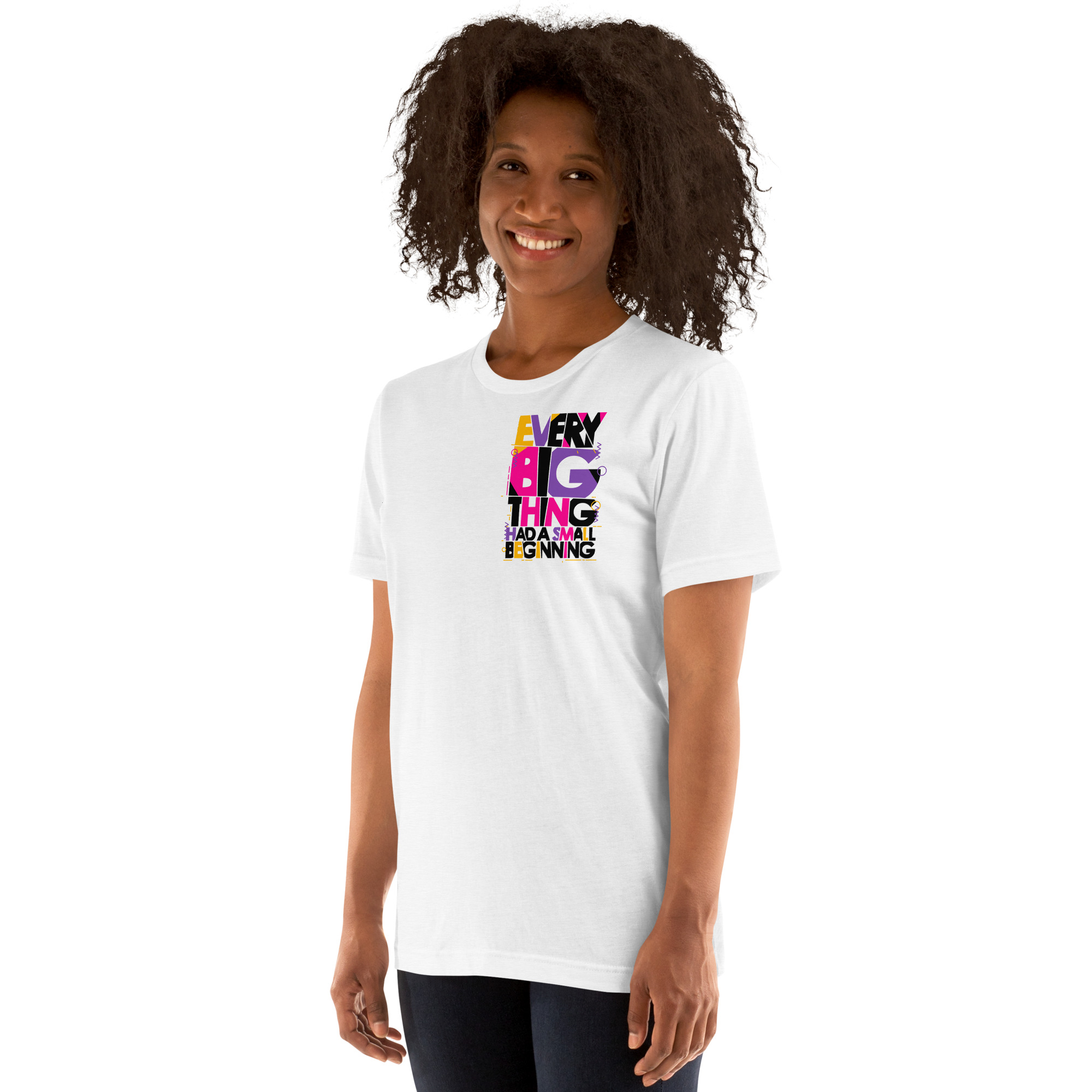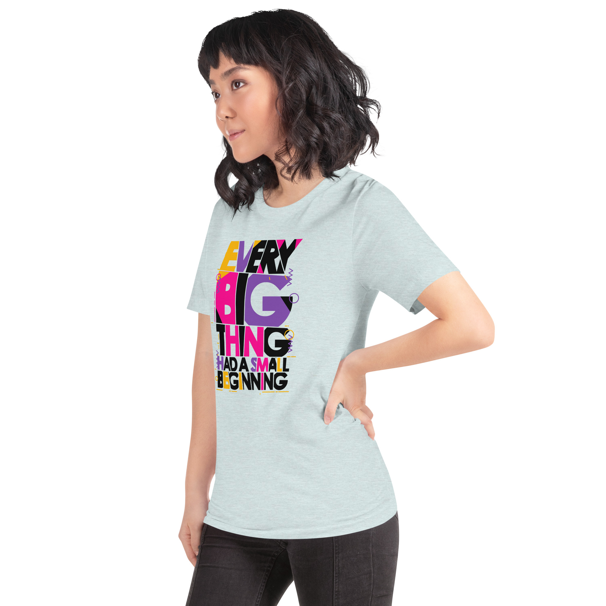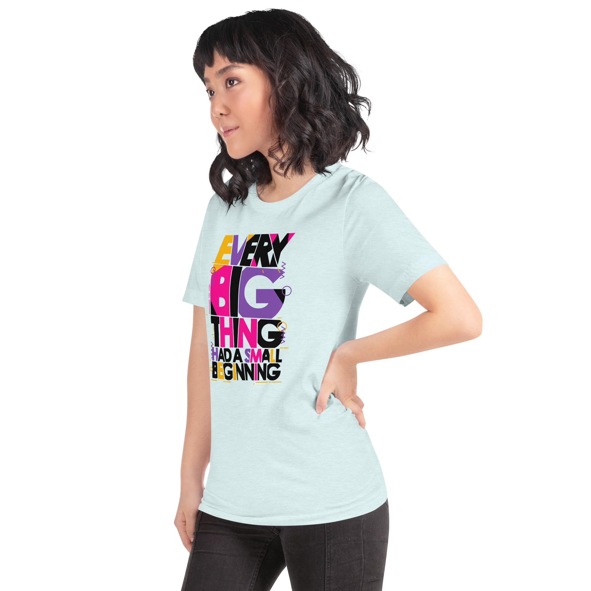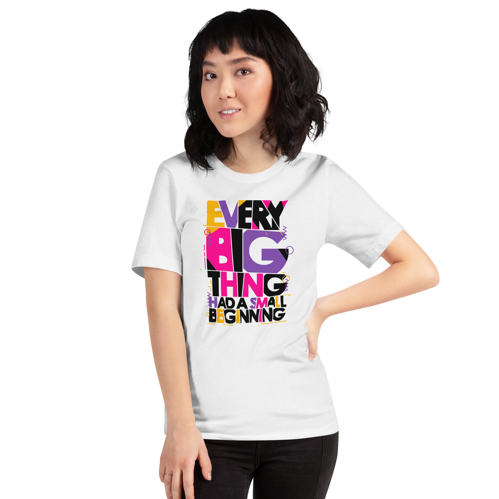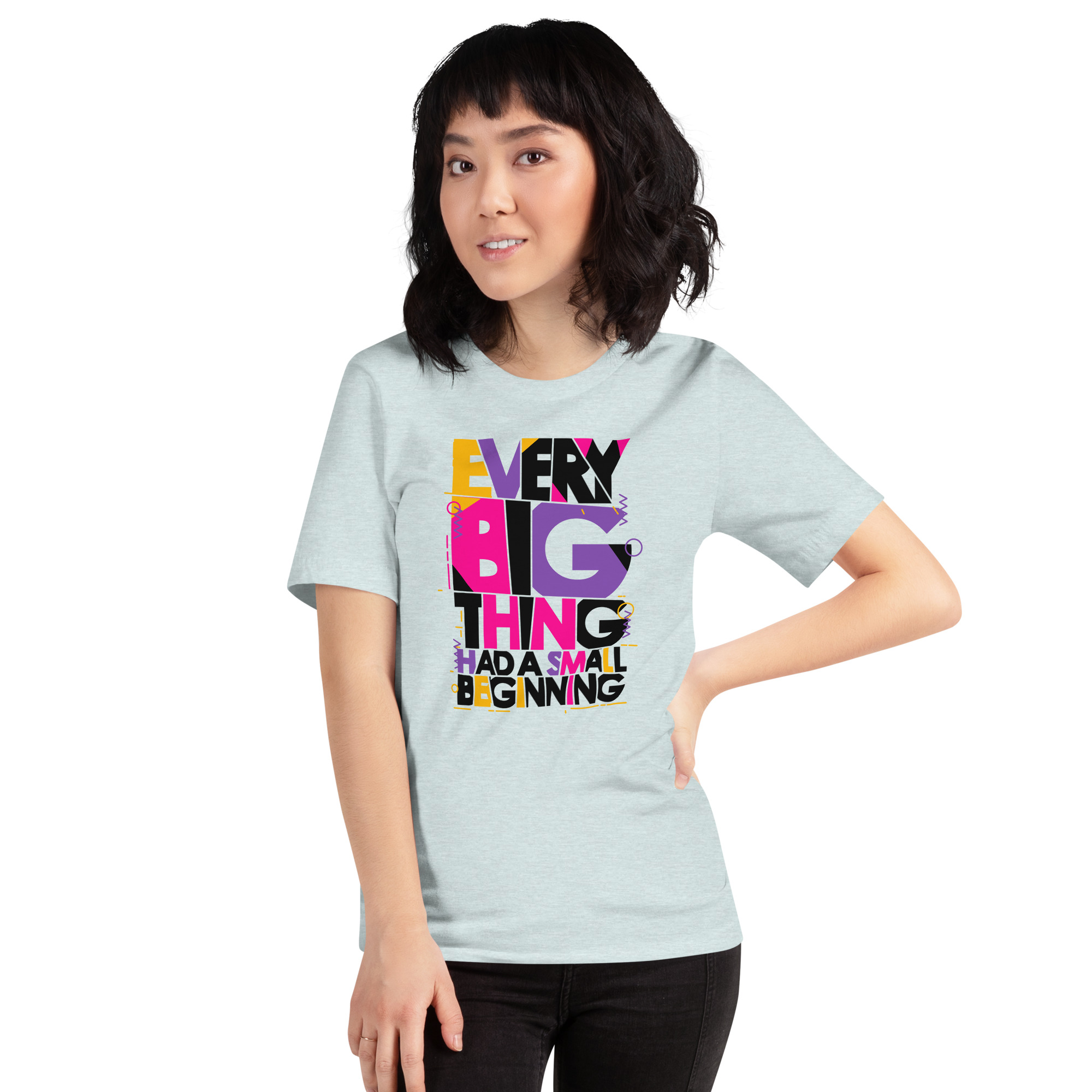 Step into your power wearing this beautiful motivation t-shirt that speaks to the dreamer, the achiever, and the unstoppable woman in you. The elegant “Every Big Thing Had a Small Beginning” design isn’t just a message—it’s your daily mindset boost, reminding you that every extraordinary journey starts with believing in yourself.