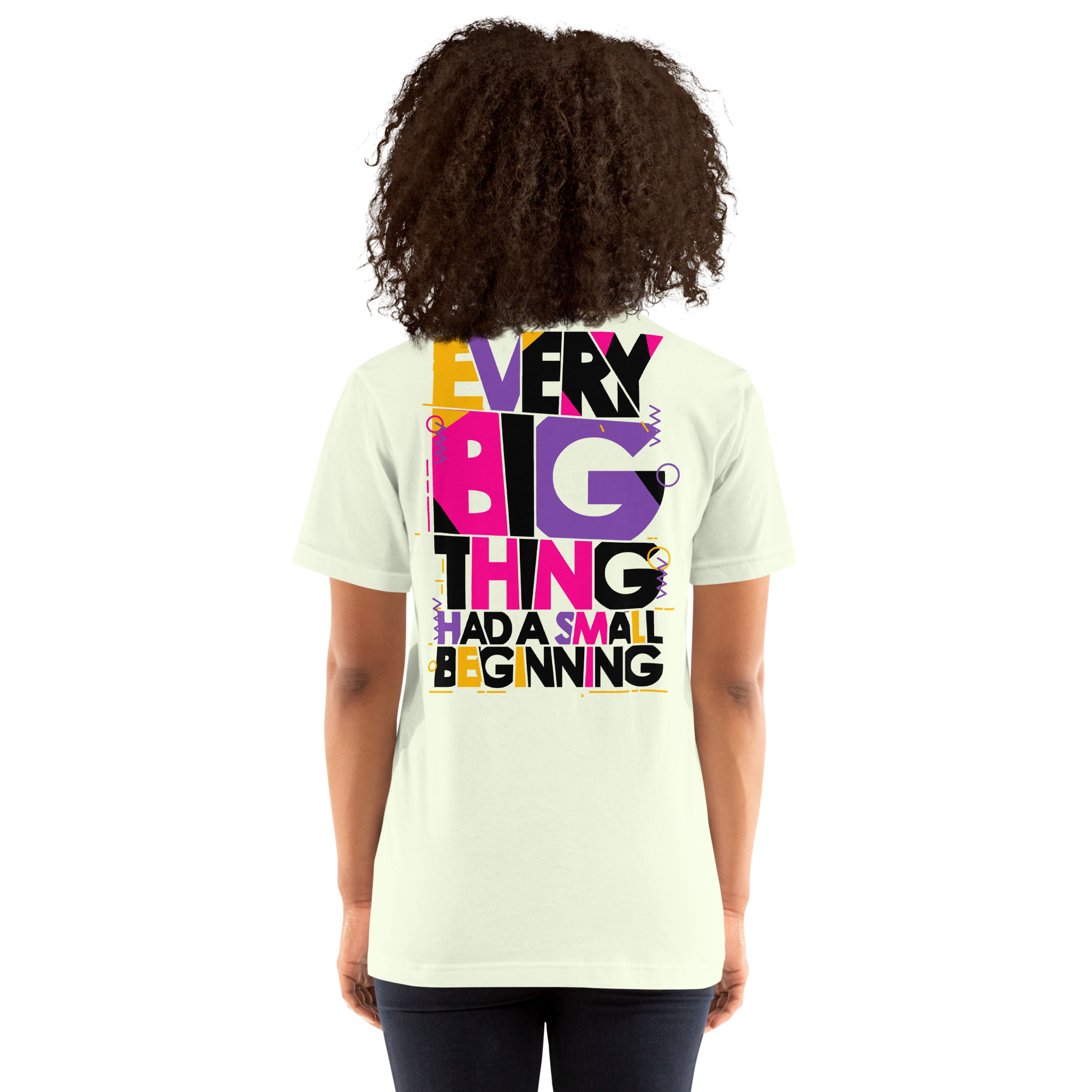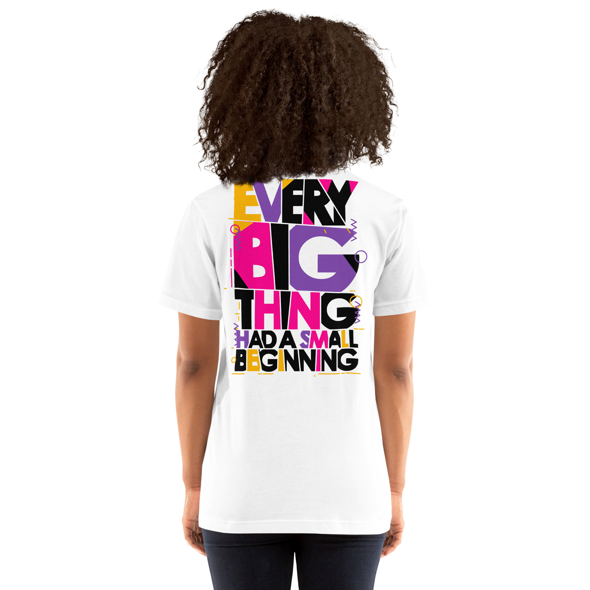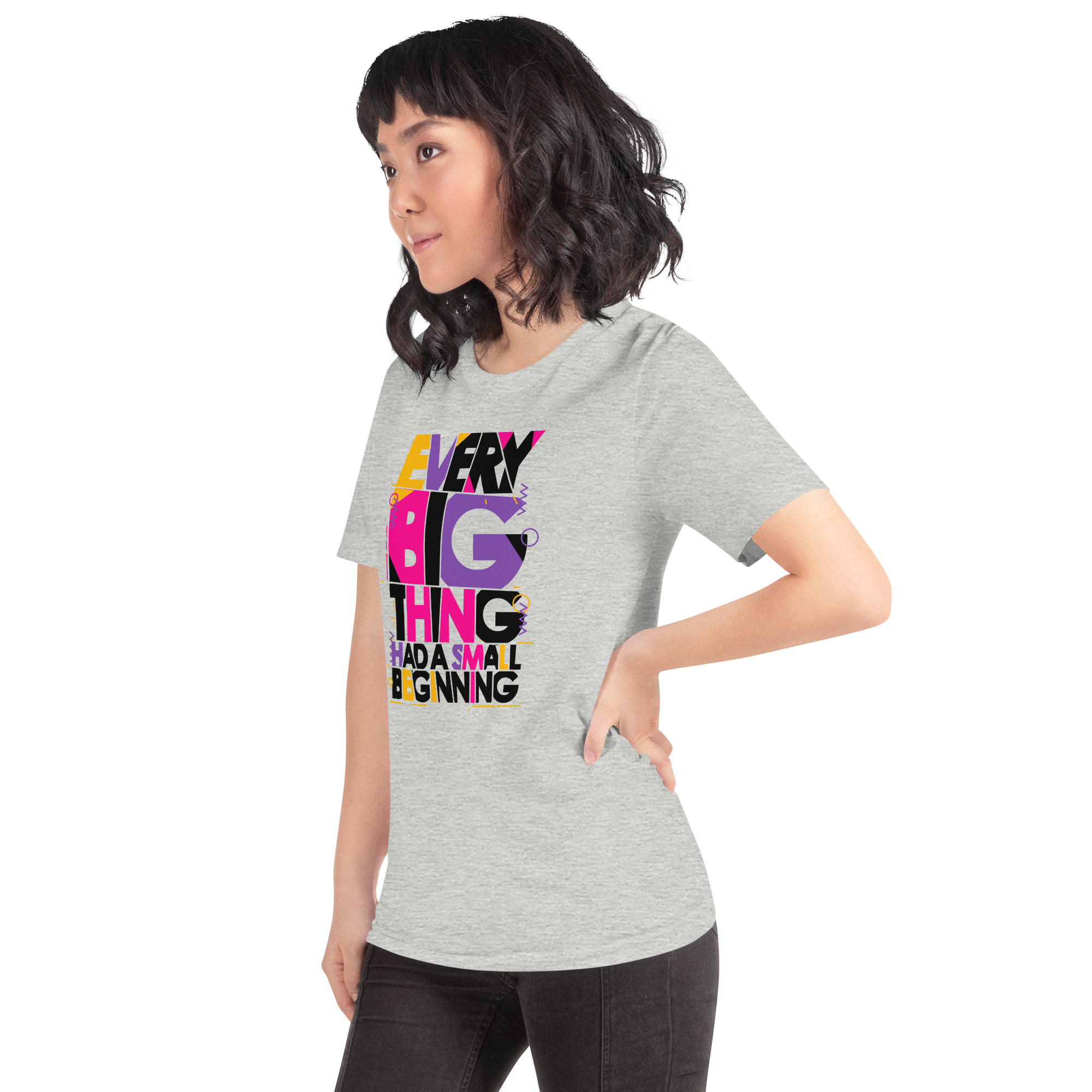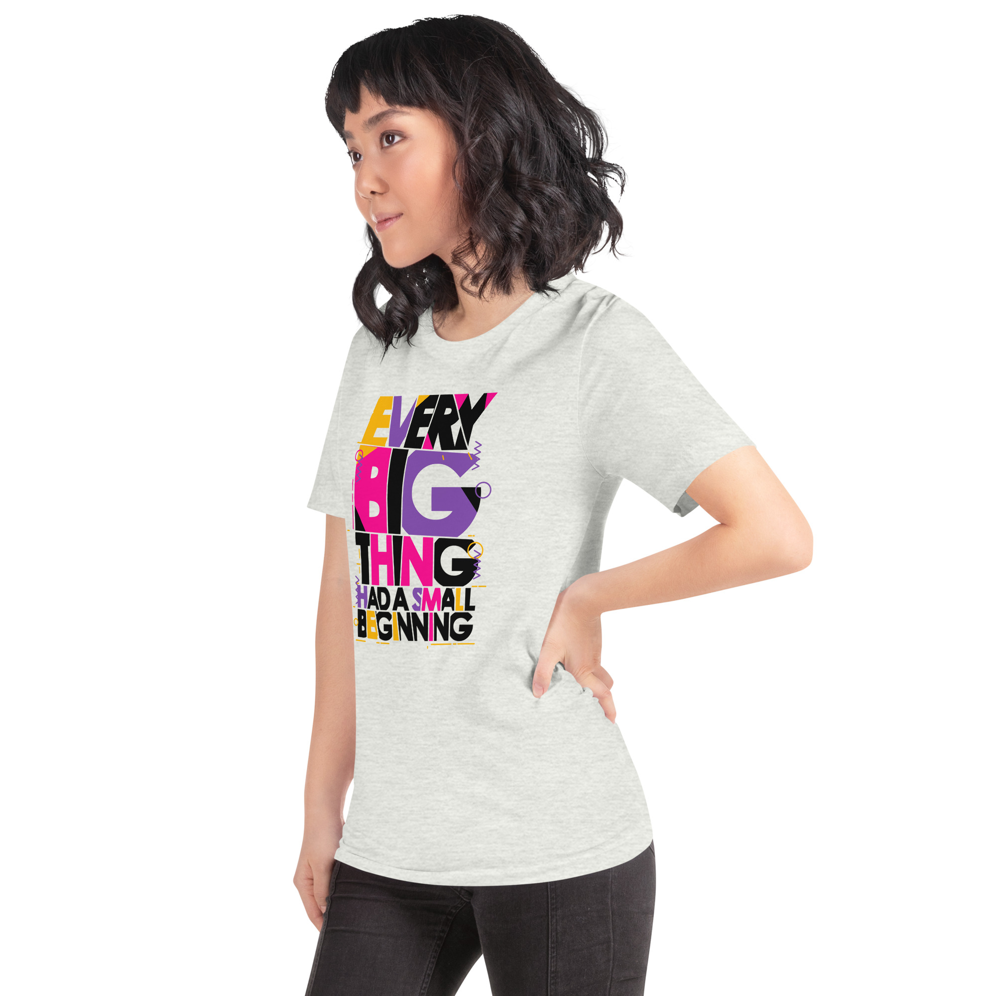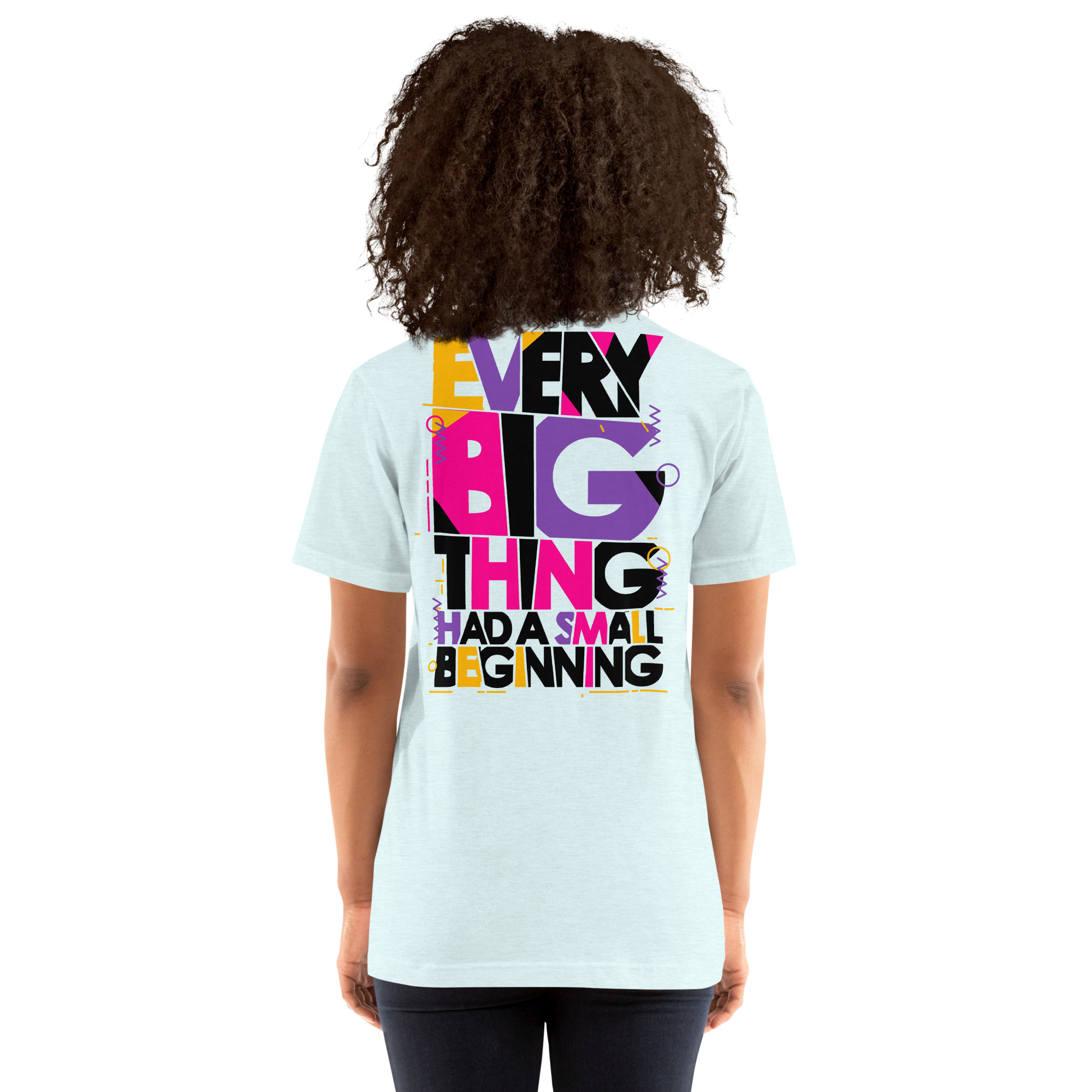 Step into your power wearing this beautiful motivation t-shirt that speaks to the dreamer, the achiever, and the unstoppable woman in you. The elegant “Every Big Thing Had a Small Beginning” design isn’t just a message—it’s your daily mindset boost, reminding you that every extraordinary journey starts with believing in yourself.