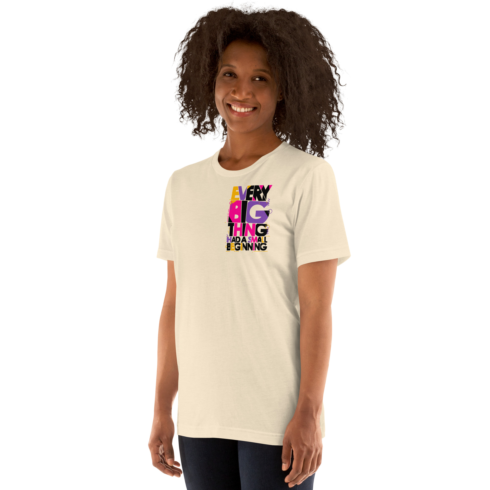 Perfect for female entrepreneurs, students, fitness enthusiasts, or any woman ready to turn her small beginnings into something magnificent. This t-shirt serves as your wearable motivation for coffee dates, gym sessions, or those moments when you need to remember your incredible potential.